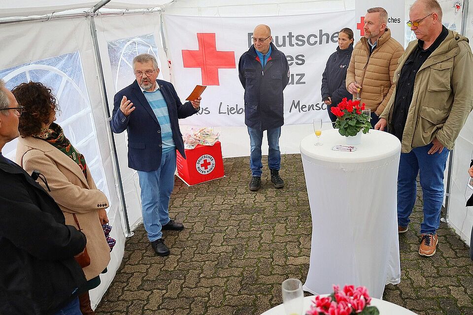 Die Abteilungsleiterin DRK-Gemeinschaftsunterkünfte Annika Keup gab den anwesenden Spenderinnen und Spendern der umgesetzten Projekte auf dem Gelände am Herrendamm einen kurzen Einblick in die Arbeit: „Hier betreuen wir zusammen mit den Kolleginnen und Kollegen der Johanniter geflüchtete Menschen, die uns von der Stadt zugewiesen werden.“ Danach gab es im Zelt auf dem Gelände des DRK Lübeck einen Imbiss, wo auch zeitgleich die ehrenamtlichen Helferinnen und Helfer der DRK-Kleiderläden, der Oldtimergruppe sowie der Bereitschaft einen Flohmarkt auf die Beine gestellt hatten.