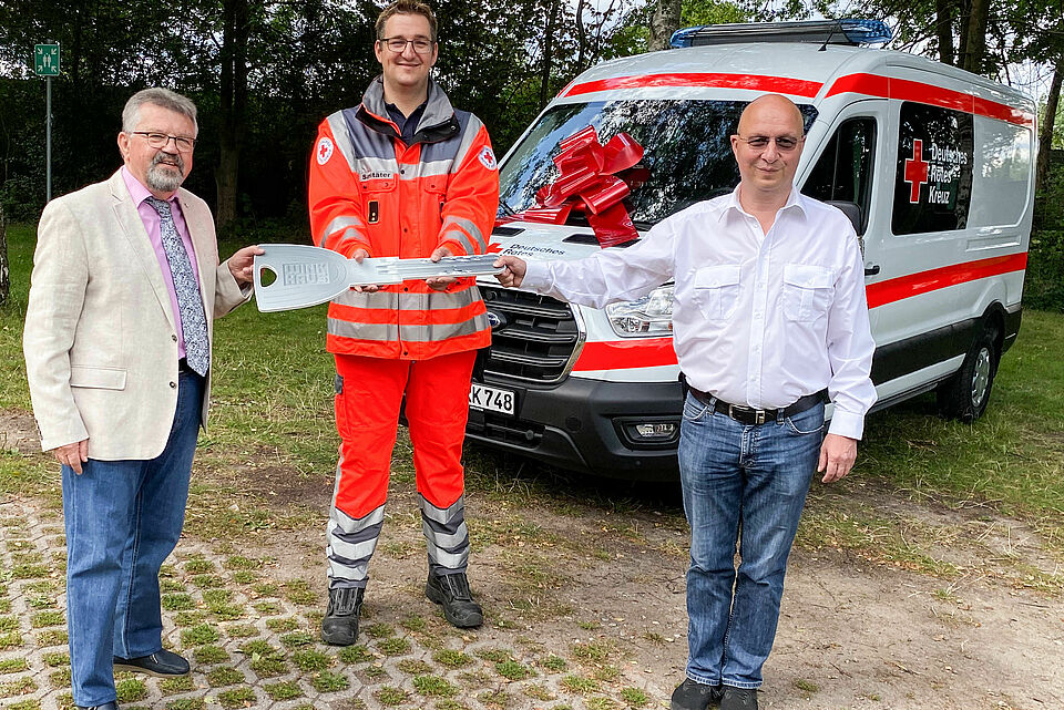 Kreisbereitschaftsleiter Martin Richter bedankte sich bei der feierlichen Schlüsselübergabe beim Präsidenten Jürgen Luig und bei Vorstand Stefan Krause. „Diese Investition ist auch ein Zeichen der Wertschätzung gegenüber den ehrenamtlichen Kollegen, die sich in ihrer Freizeit für das Wohl der Lübecker engagieren“, so Martin Richter. Unter anderem hat die Bereitschaft im März am Zentrallabor ein großes Zelt für Corona-Tests aufgebaut und dringend benötigte Schutzausrüstung aus verschiedenen Lagern in Deutschland abgeholt.